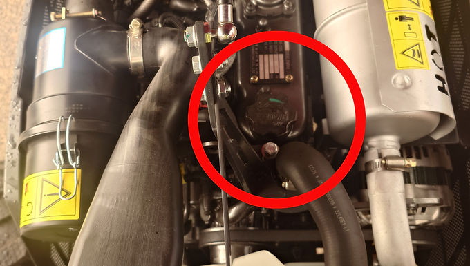 The engine oil filler is the cap on the rocker box cover on top of the engine.